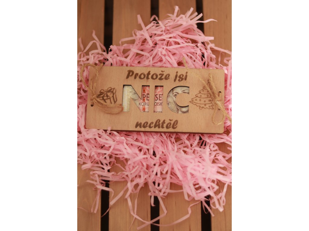 Tahle vtipná dřevěná obálka s nápisem „Protože jsi nic nechtěl“ je ideální dárek pro partnera, kamaráda nebo člena rodiny, který nikdy neví, co by si přál.😁